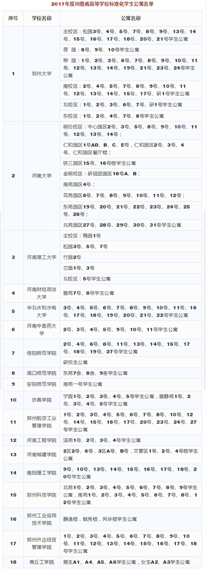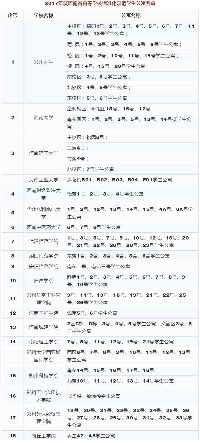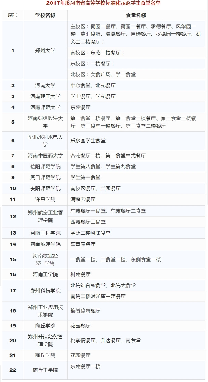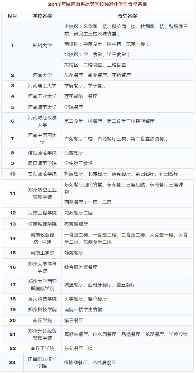 根據(jù)**組推薦結果,經(jīng)研究,4月23日,河南省教育廳對2017年度河南省高等學校標準化學生公寓和標準化學生食堂評審結果進行了公示??炜茨慵覍W校公寓和食堂入選了沒!